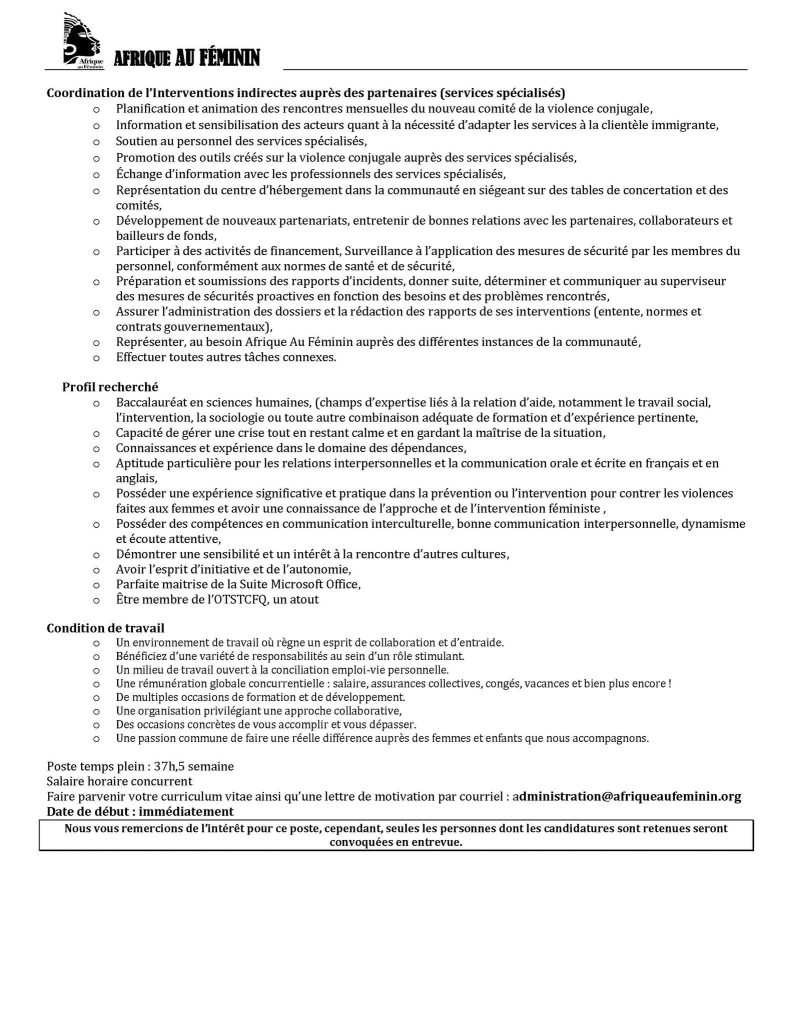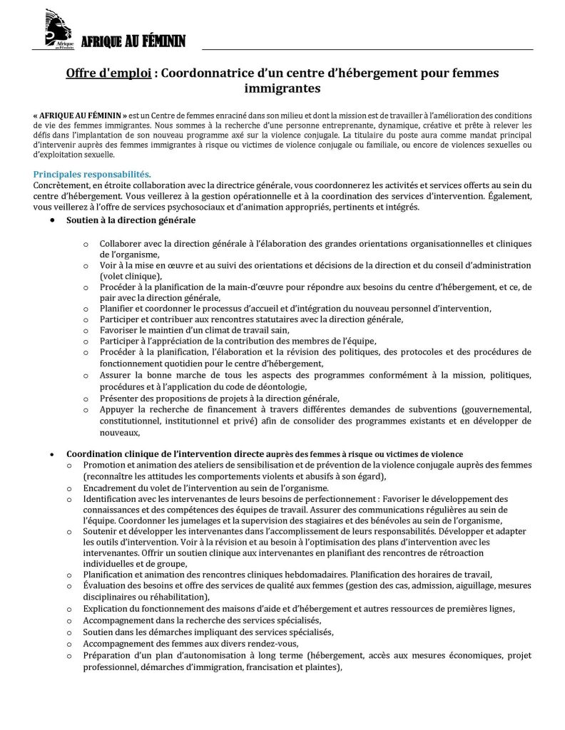 NOUS ENGAGEONS- COORDINATRICE CENTRE D’HÉBERGEMENT POUR FEMMES IMMIGRANTES